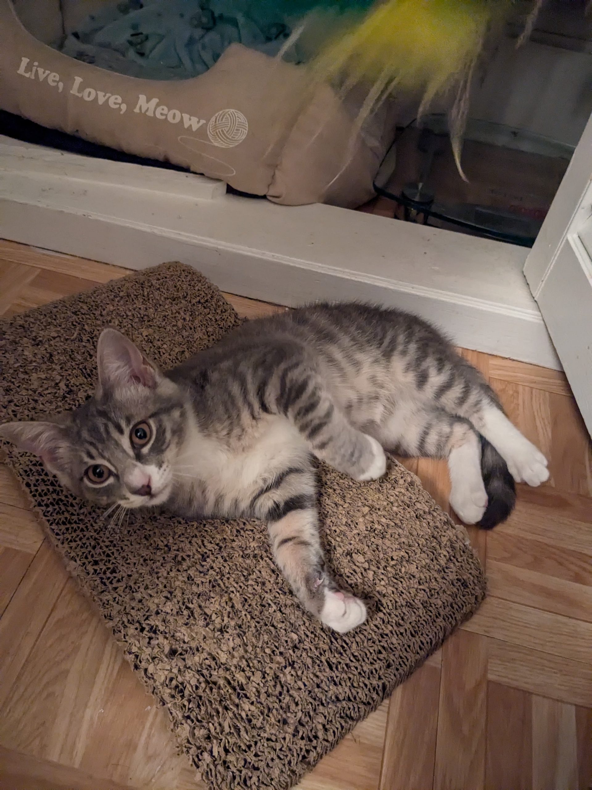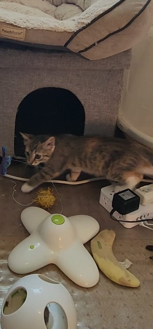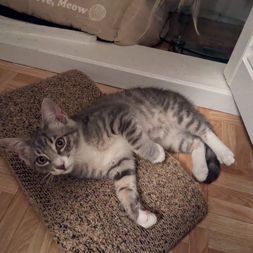 Meet Boo! Boo was rescue from a church yard in Astoria. Boo enjoys playing with 3 siblings. Also loves to cuddle.